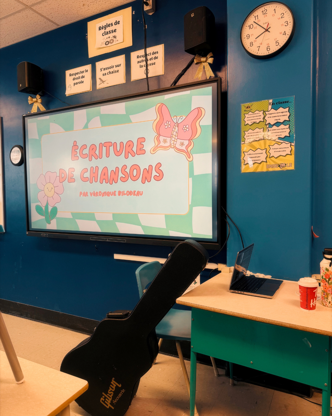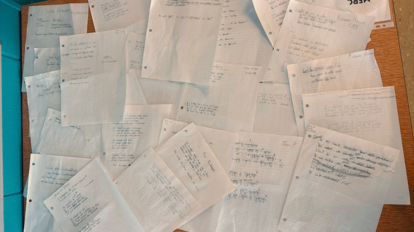 Au terme de l’écriture, Véronique crée une mélodie et une musique pour accompagner les paroles. Ce sont les élèves qui décident de la direction artistique de la chanson, afin qu’elle leur ressemble vraiment!